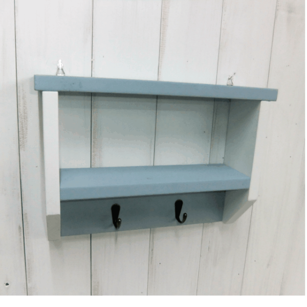 ボックスタイプのシェルフにフックが付いて、使い方も広がります。